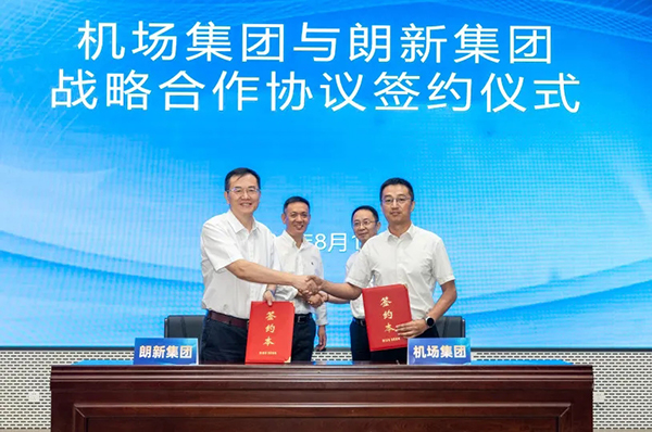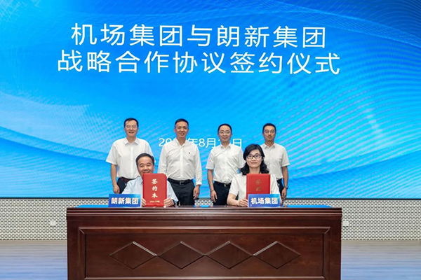 活动现场,机场集团与朗新集团共同签署战略合作、党建联盟合作协议。